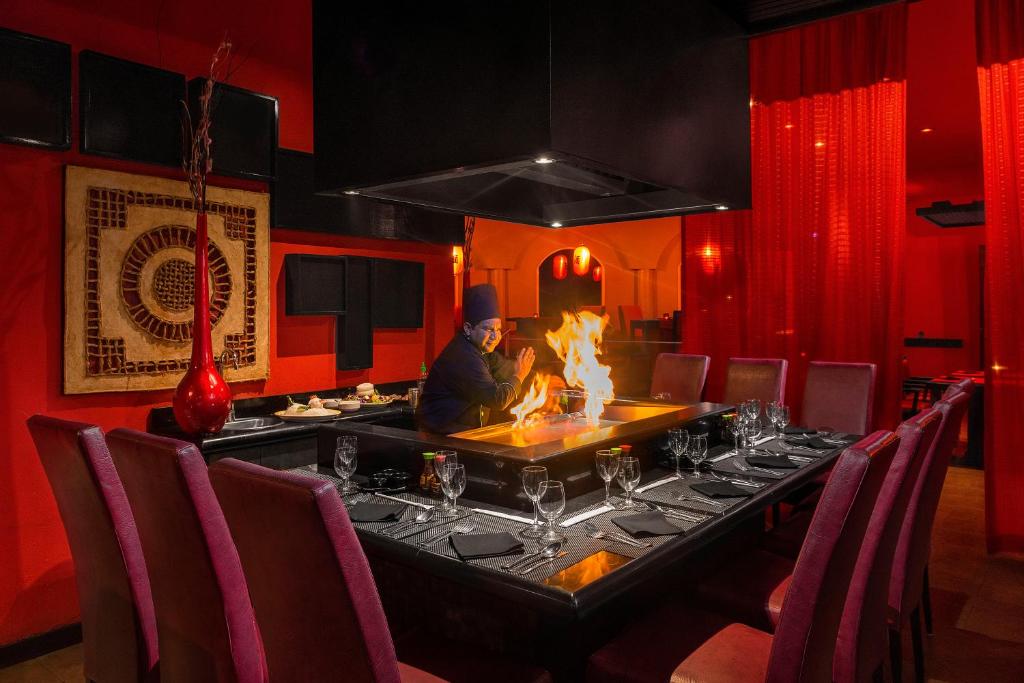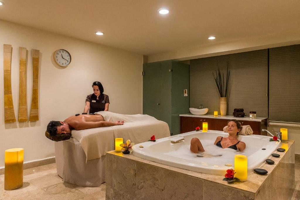 Stravovanie: all inclusive. Reštaurácie a bary v resorte: hlavná bufetová reštaurácia s medzinaŕodnou kuchyňou La Hacienda, romantická (á la carte) Blue Moon Restaurant (večere), talianska (á la carte) La Dolce Vita, reštaurácia pri bazéne El Charro (cez deň snacky, večer mexická kuchyňa), ázijská (á la carte) Yookoso, kaviareň Mike´s Coffee, Lobby bar, Pool Bar pri bazéne (s ponukou hamburgerov, BBQ a food truckom v štýle amerických 50´s/60´s), Aqua Lounge (otv. 24 hod.) a Fresco Juice Bar.