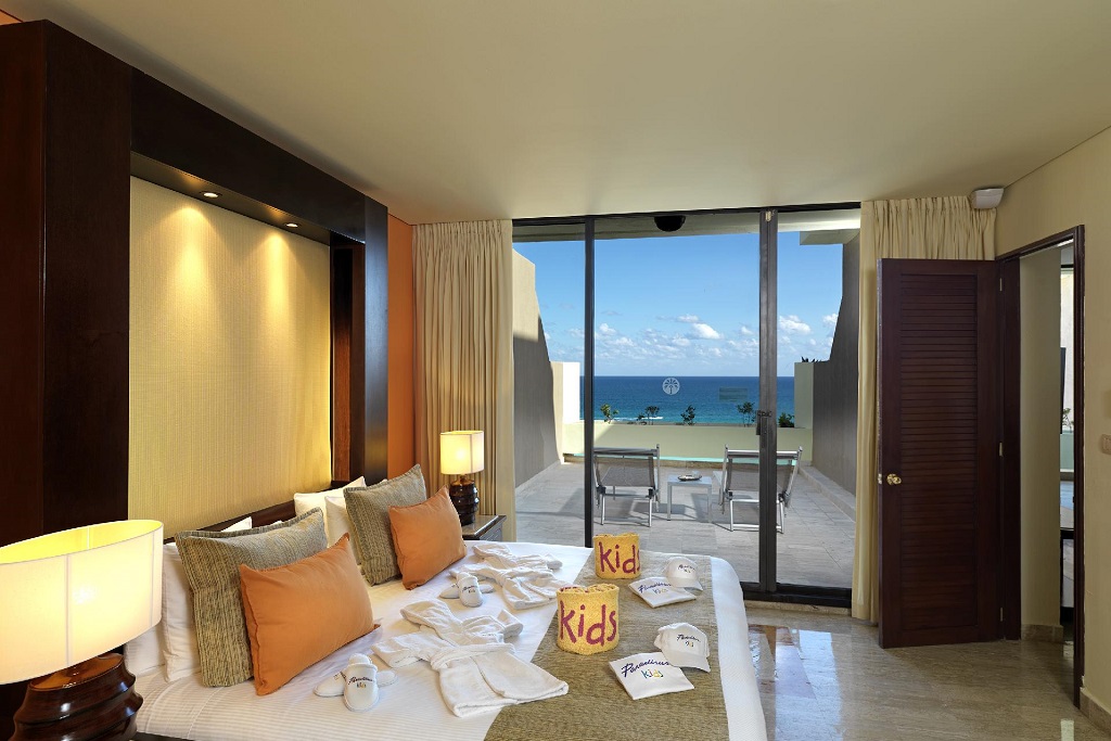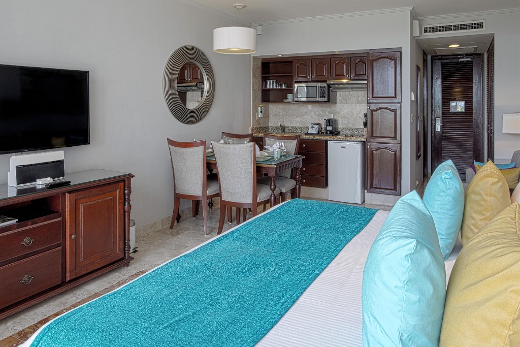 Priestranná, moderne zariadená suite s výhľadom na Nichupté lagúnu alebo na more. Izba je vybavená zariadenou terasou/balkónom, king-size posteľou alebo dvomi oddelenými lôžkami, kúpeľňou so sprchou alebo vaňou, minibarom, TV, trezorom, žehličkou a žehliacou doskou. Izby sú klimatizované.