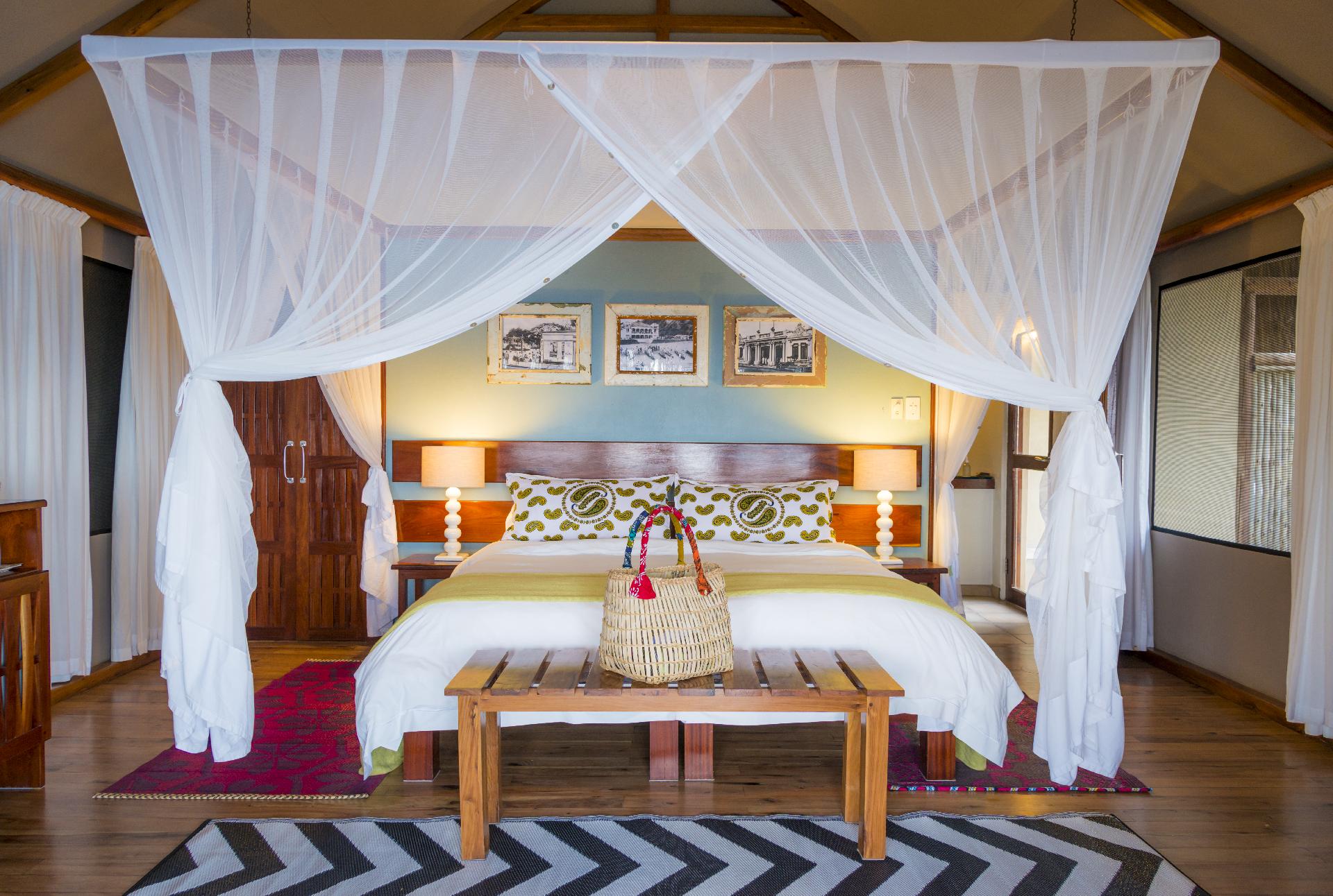 Popis: exkluzívny rezort na samom konci polostrova Machangulo zhruba 1,5 h jazdy člnom z prístavu v Mapute a ležiaci priamo pri nekonečných a úplne opustených pláží Indického oceánu.