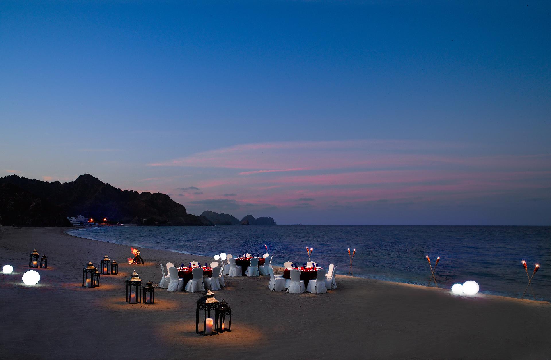 Veľmi luxusný hotel s 250-timi izbami leží 35 km od letiska v Muscate v tesnom susedstve hôr a tiež na krásnej dlhej piesočnatej pláži na pobreží Ománskeho zálivu.