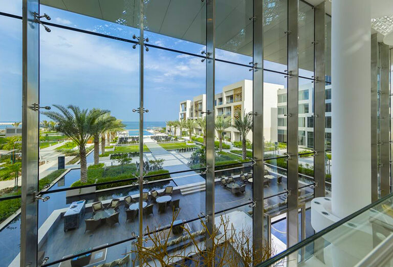 recepce a lobby v moderním stylu, výtah, klimatizace, WiFi v celém objektu zdarma, 5 restaurací s otevřenou kuchyní, kavárna, lobby bar, bar u bazénu, bar. Cigar Lounge s bohatým výběrem doutníků a nápojů. Denní západ slunce v Amwaj Lounge s nápoji a občerstvením v 18:00 (kromě ramadánu) Služba concierge, pokojová služba, prádelna, sluneční terasa, infinity bazén, bazén pouze pro dospělé, dětský bazén. Pro děti dále herna, mini klub 4-12 let, dětské hřiště.