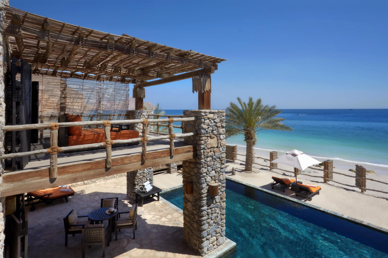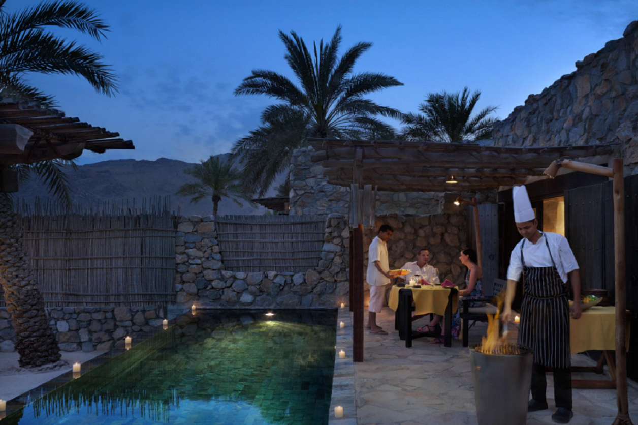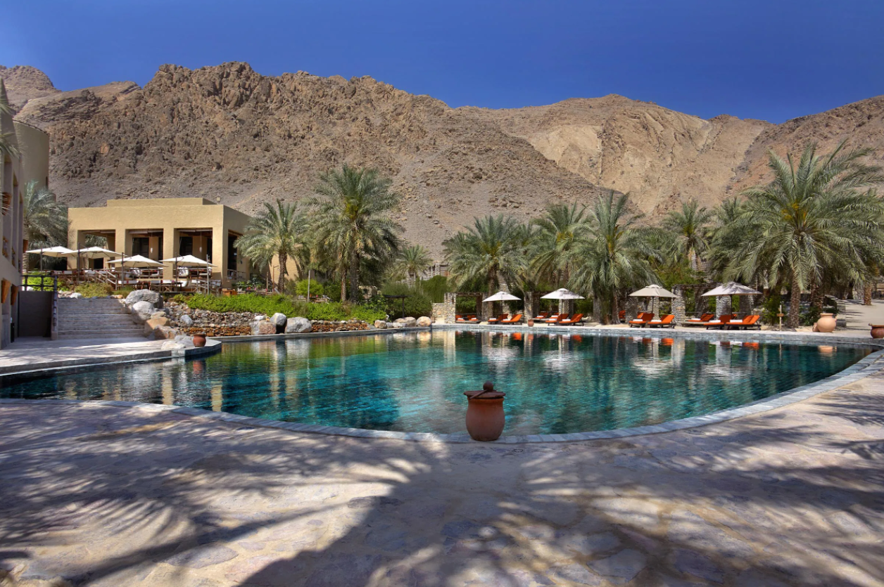 Popis: jeden z najluxusnejších ománskych rezortov je postavený v štýle ománskej rybárskej dedinky. Nachádza sa v zálive Zighy Bay na polostrove Musandam, ktorý je od ostatného územia oddelený časťou Spojených arabských emirátov. Vzdialenosť od letiska v Dubaji je cca 150 km. Rezort je obklopený horami vysokými 2100 m a jeho poloha tak vytvára dojem akéhosi fjordového zálivu.