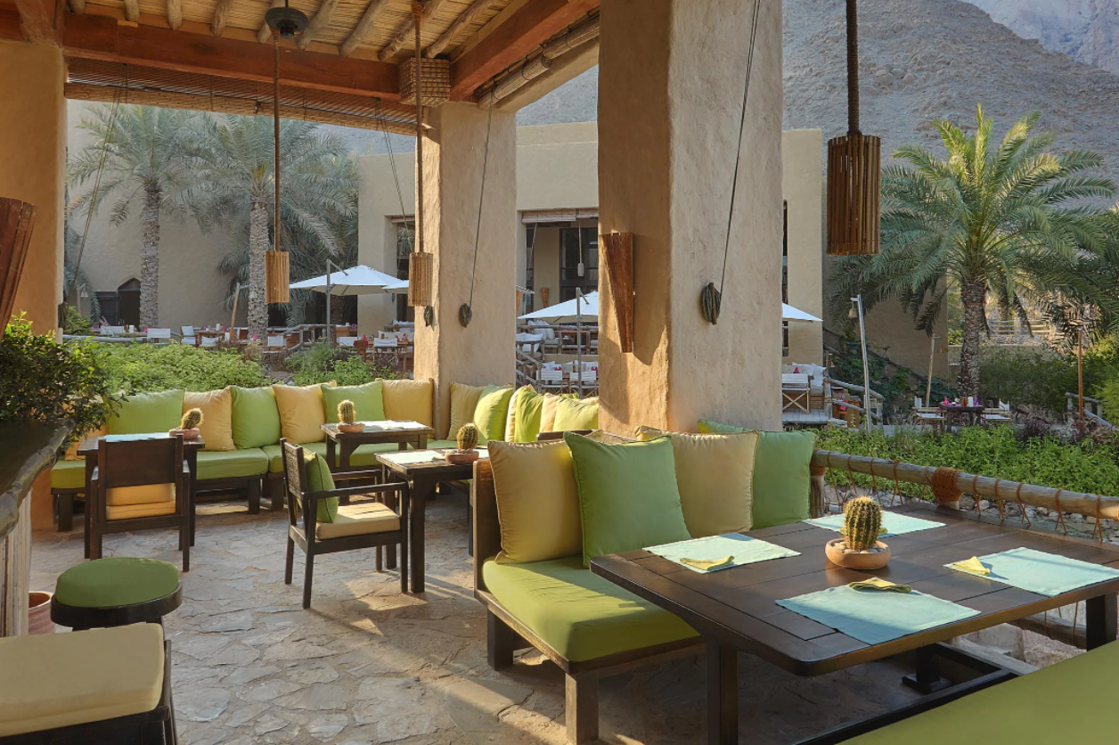 Vybavenie: reštaurácie: Summer house, Spice market, Sense on the Edge (situovaná v horách nad rezortom s dych vyrážajúcim výhľadom na celý Zighy záliv), Shua Shack, Zighy bar, vinotéka, konferenčná miestnosť, Zighy Souk - ománsky trh, knižnica,Wi-Fi pripojenie, galéria, čistiareň.