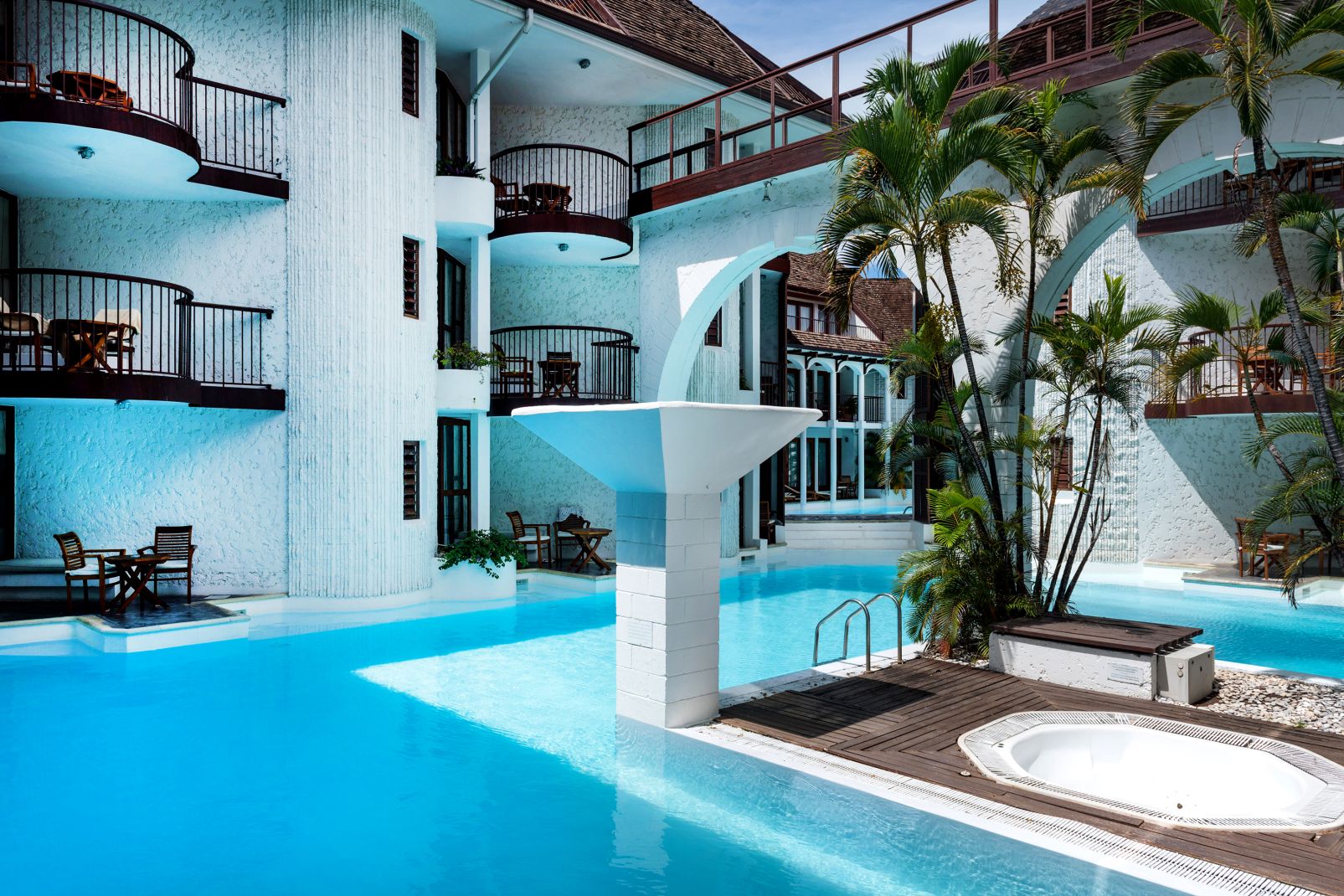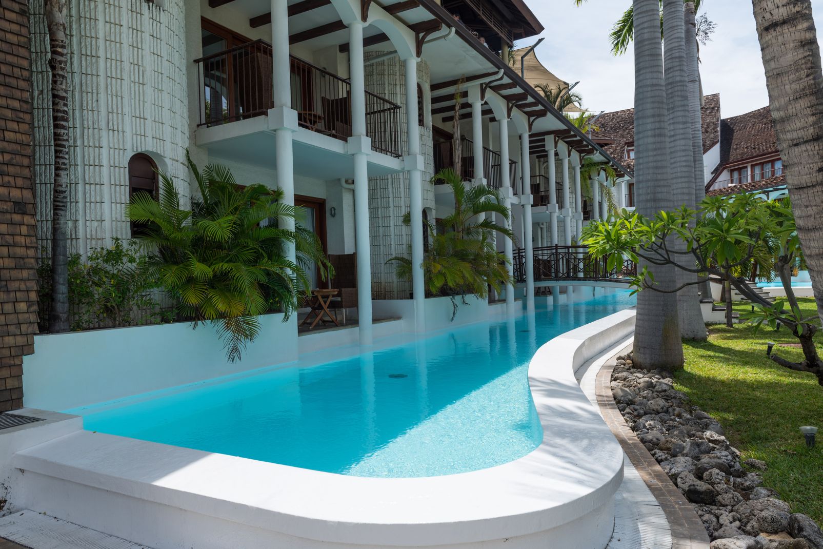 Architektonicky veľmi zaujímavo riešený hotel so 60 izbami v dvoj až trojposchodových budovách ležiacich pozdĺž 650 metrov dlhého bazénu. Areál obklopuje udržiavaná záhrada.