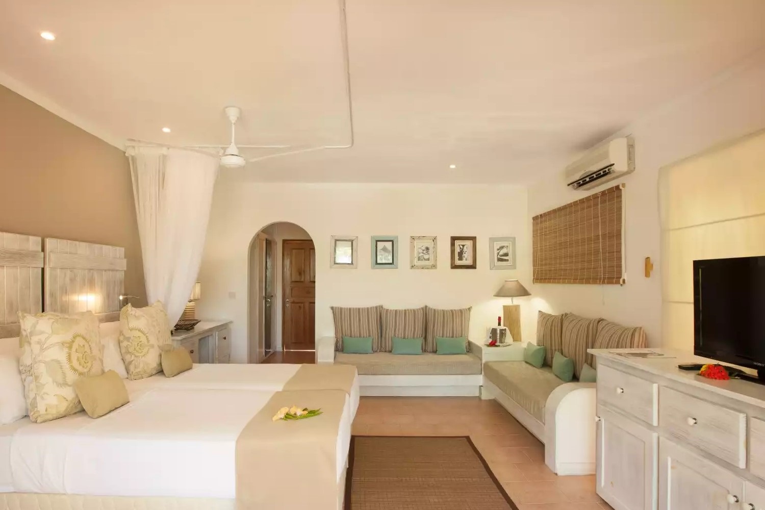 Štandardné izby Guest Rooms sú vybavené king-size posteľou, ale je možné pridať aj dve pohovky a ubytovať tak dve deti do 10 rokov. Izby typu "interconnected" sú vhodné pre rodiny so staršími deťmi a môžu ubytovať aj 4 dospelých. K vybaveniu patrí: king-size posteľ, kúpeľňa s WC a priestranno usprchou, stropný ventilátor, telefón, trezor, kávovar, balkón alebo terasa s výhľadom do záhrady a na pláž.