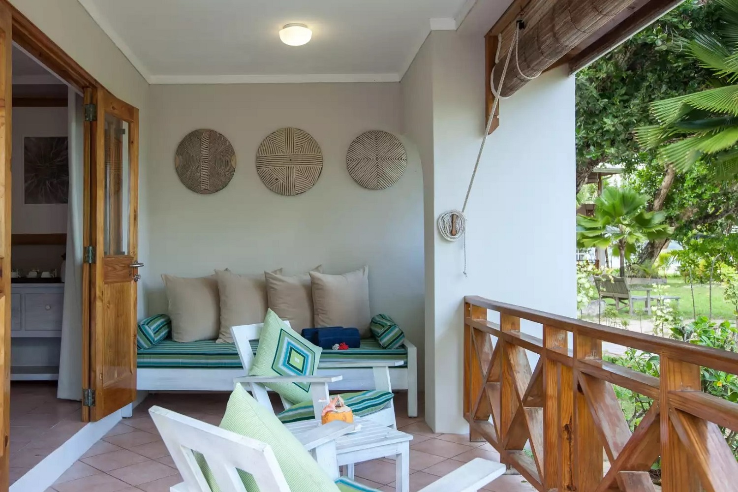 Vybavenie izieb: 32 Guest Rooms v typickom kreolskom štýle obklopených tropickou záhradou. Štandardné izby sú vybavené king-size posteľou, ale je možné pridať aj dve pohovky a ubytovať tak dve deti do 10 rokov. Izby typu "interconnected" sú vhodné pre rodiny so staršími deťmi a môžu ubytovať aj 4 dospelých. K vybaveniu patrí: king-size posteľ, kúpeľňa s WC a priestranno usprchou, stropný ventilátor, telefón, trezor, kávovar, balkón alebo terasa s výhľadom do záhrady a na pláž.