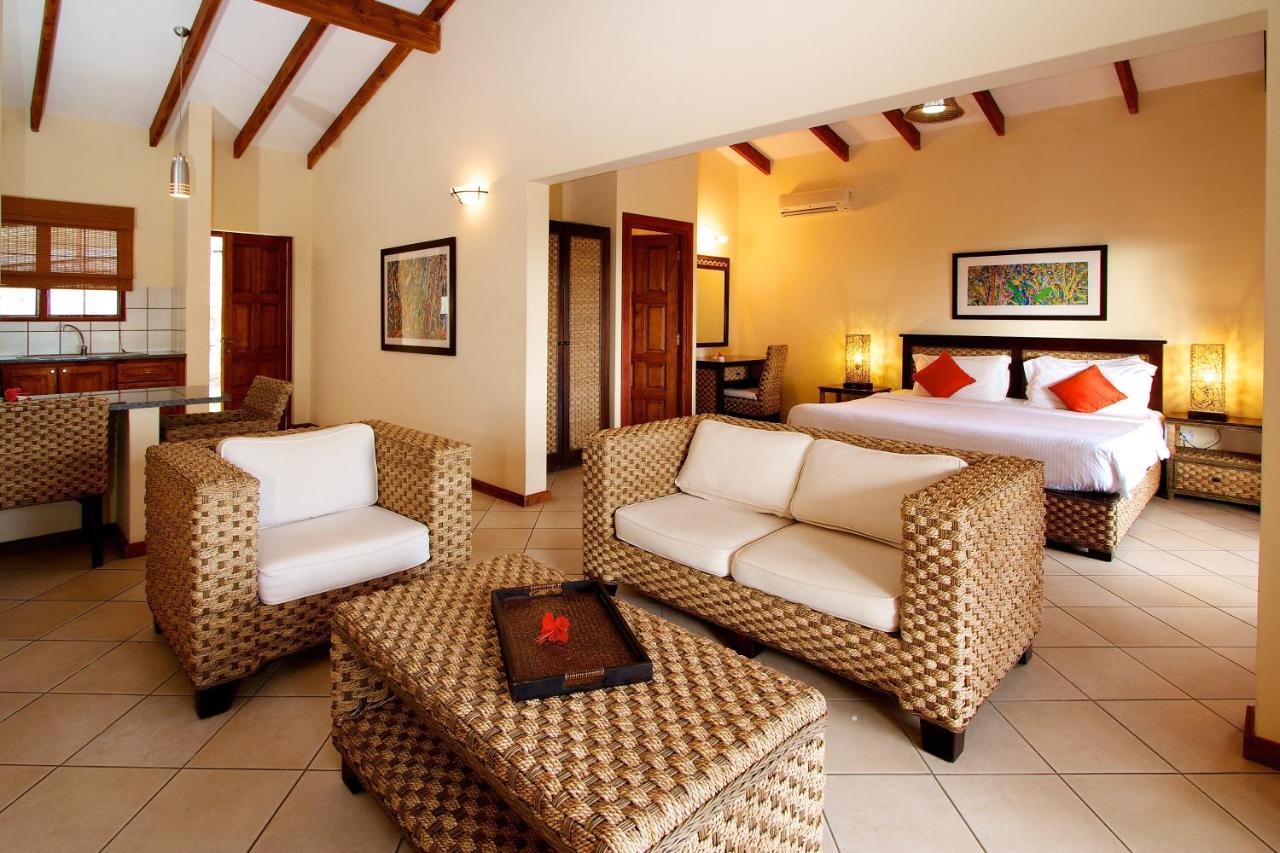 V izbe je oddelená obývacia časť s pohovkou, kuchynský kút a jedálenský stôl, spálňa s kúpeľňou. Každá Deluxe Villa má aj privátnu terasu s výhľadom do tropickej záhrady alebo na oceán. Max. kapacita 2 dospelí a dieťa do 12 rokov.