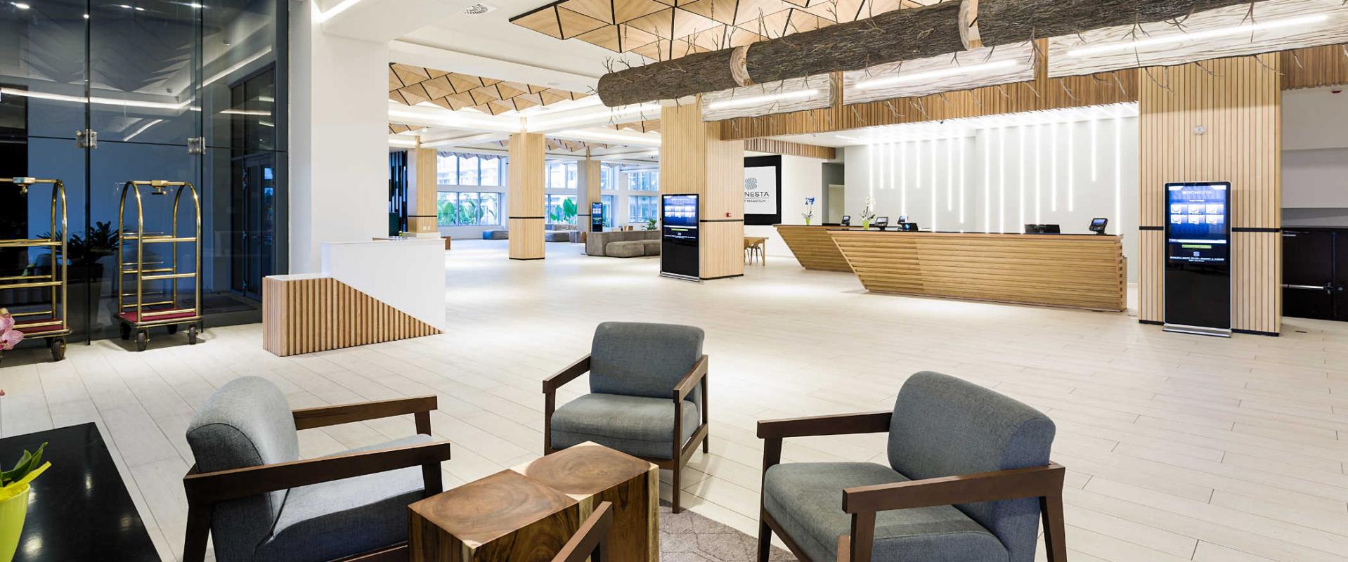 Poloha: novo vybudovaný rezort tradičného hotelového reťazca leží na unikátnom mieste - skalný výbežok s výhľadom na pristávaciu plochu medzinárodného letiska v susedstve hotela Sonesta Maho beach. Hoteloví hostia môžu využívať športové, spoločenská a gastronomické zariadenia oboch hotelov. V neďalekej dedine Maho možnosti nákupov, zábavy a nočného života.
