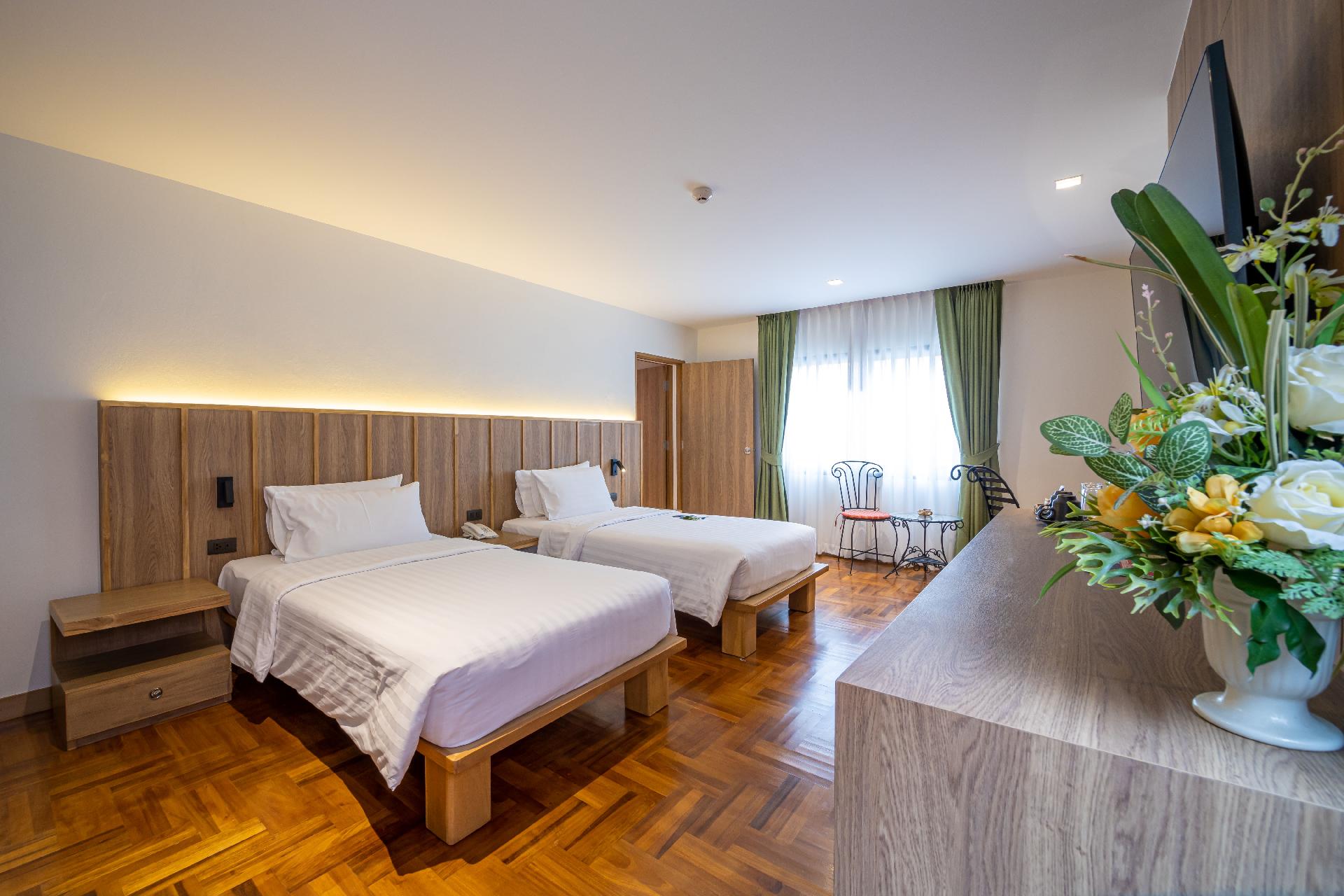 VYBAVENIE IZIEB: izby deluxe sa nachádzajú na 2. a 3. podlaží. Komfortne zariadené izby majú balkóny s výhľadom do záhrady. K vybaveniu patrí kúpeľňa s vaňou / sprchou a WC, klimatizácia, telefón, TV, chladnička, trezor, sušič vlasov. WiFi zadarmo. K dispozícii aj set na prípravu čaju a kávy.