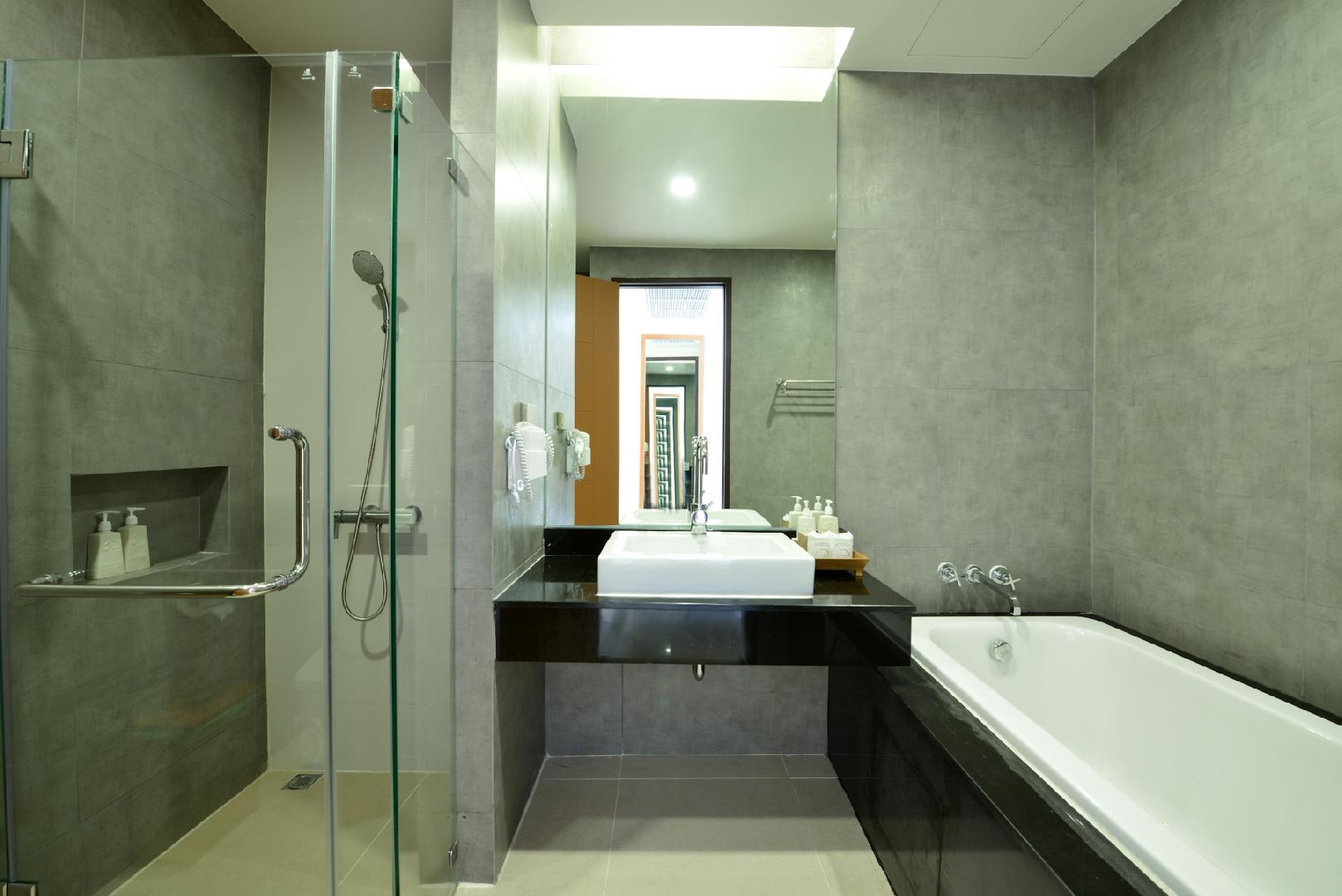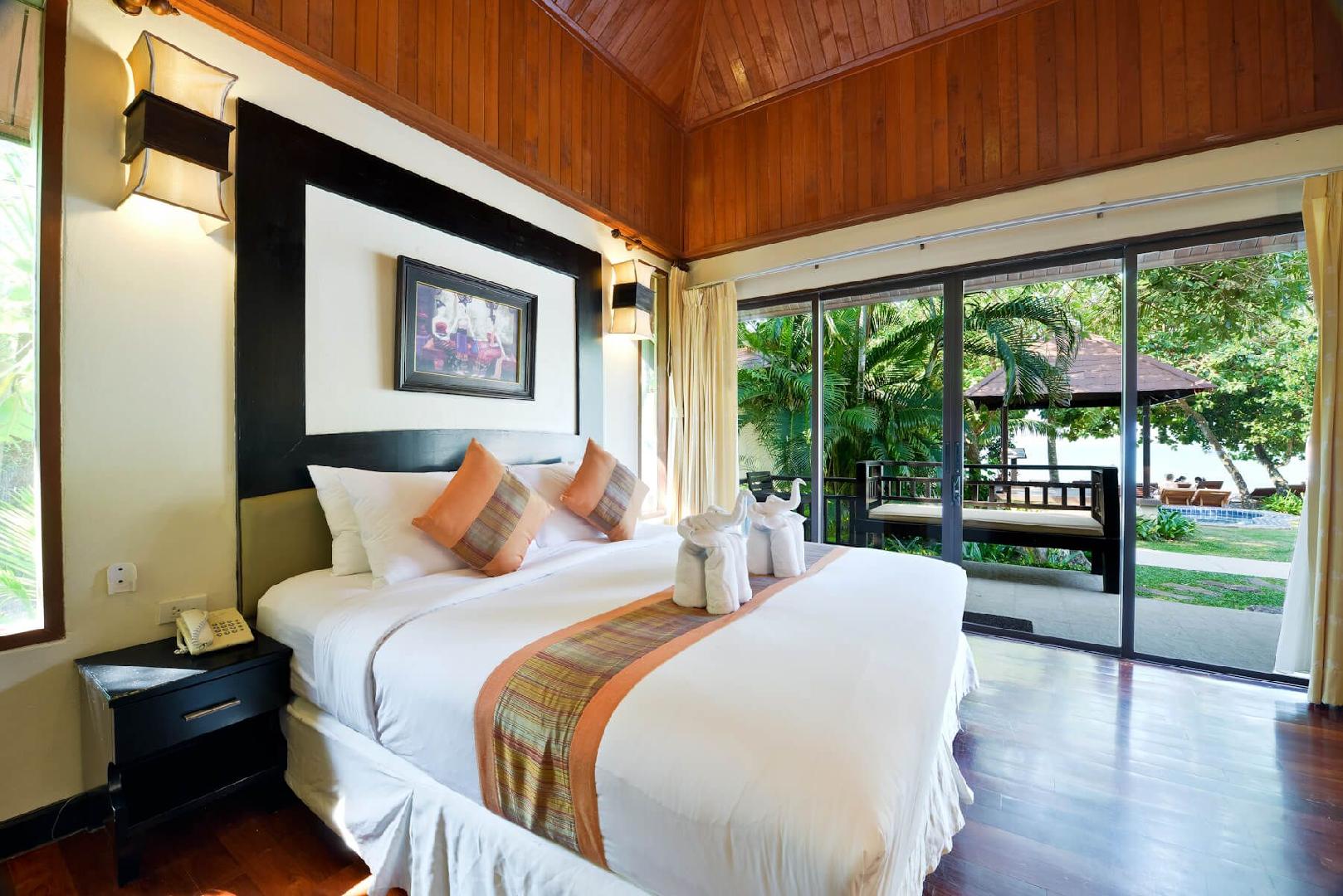 Vybavenie izieb: priestranné izby dekorované v thajskom štýle, nastaviteľná klimatizácia, minibar, telefón, kúpeľňa s WC, sušič vlasov, kávovar, TV s plochou obrazovkou, terasa či balkón s výhľadom na bazén alebo záhradu. V základnej ponuke sú izby deluxe ocean view v hlavnej budove, príplatky za bungalovy na vyžiadanie.