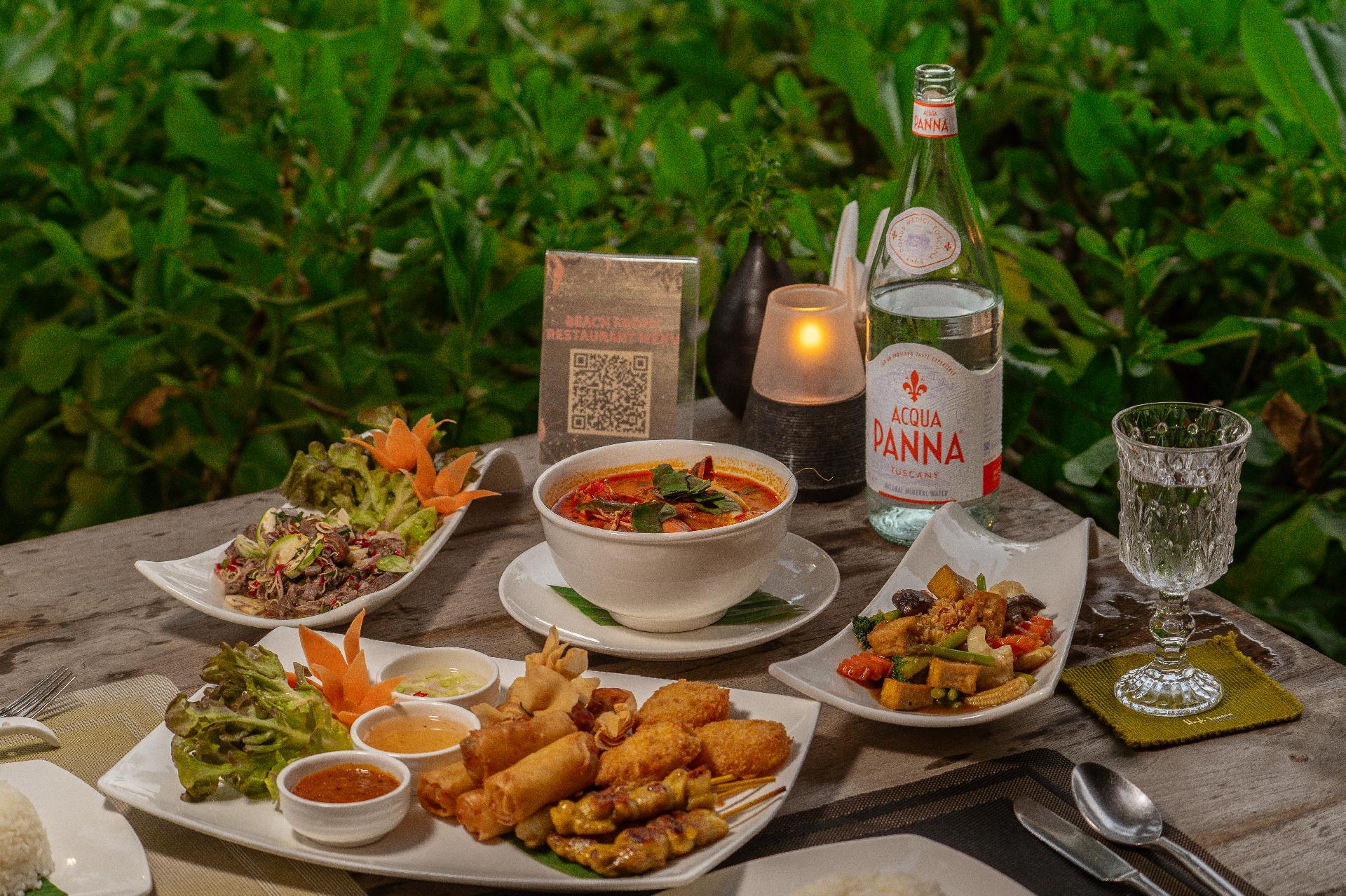 Vybavenie: luxusná plážová reštaurácia s bohatým výberom národnej thajskej i medzinárodnej kuchyne, bar s večernou živou hudbou a bar pri bazéne.