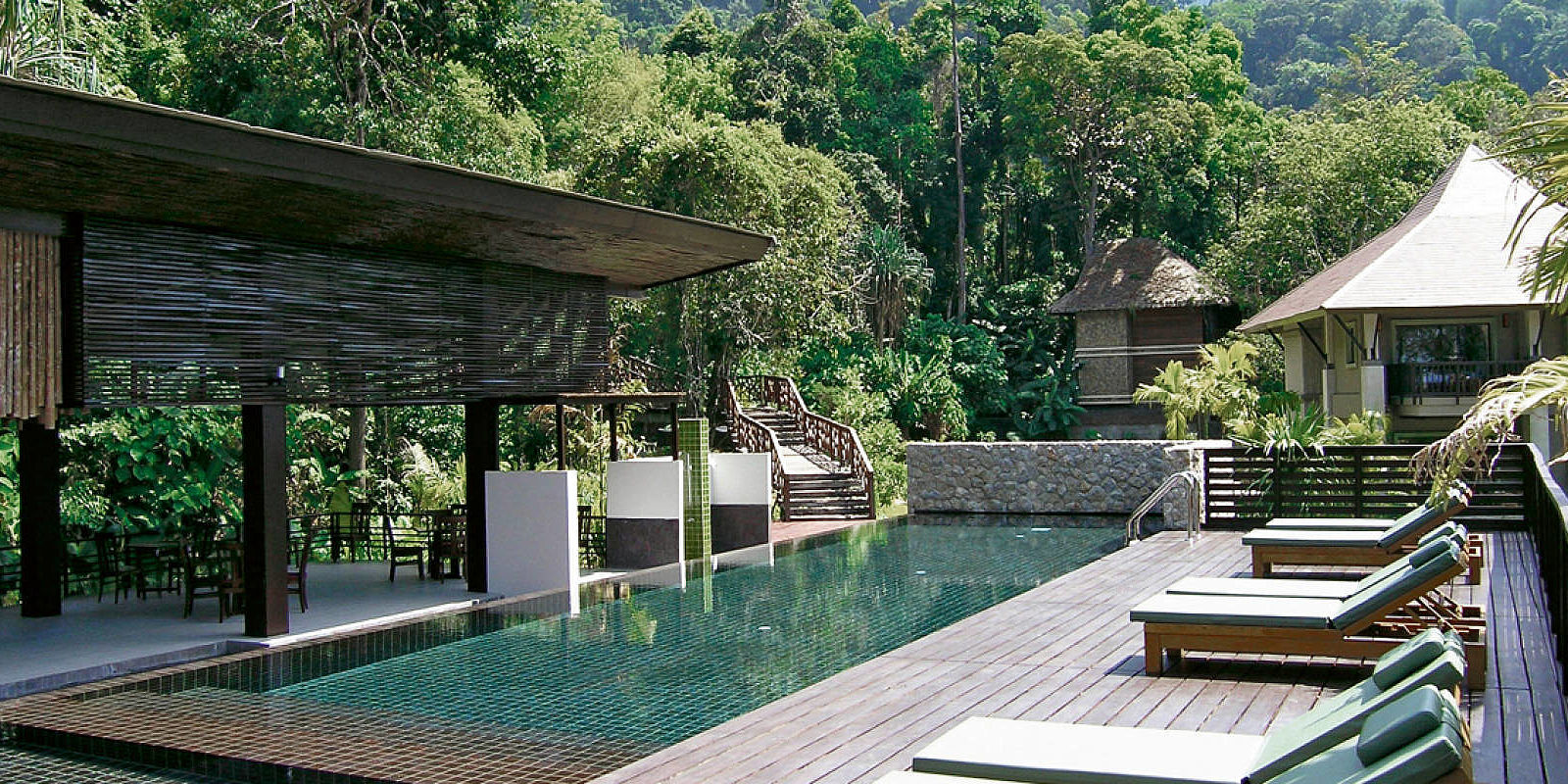 Popis: útulný butikový hotel na okraji dažďového pralesa priamo na krásnej odľahlejšej pláži. Jedná sa o pokojné miesto vzdialené iba hodinu transferu od medzinárodného letiska Phuket. Restaurácie a bary vo vzdialenosti 800 m od hotela. Ubytovanie vo vilkách obklopených krásnou záhradou uprostred s lagúnou. V základnej cene sú jednoposchodové vilky s niekoľkými separátnymi vchodmi a s výhľadom na lagúnu. Na vyžiadanie a za príplatok vilky s výhľadom na more.