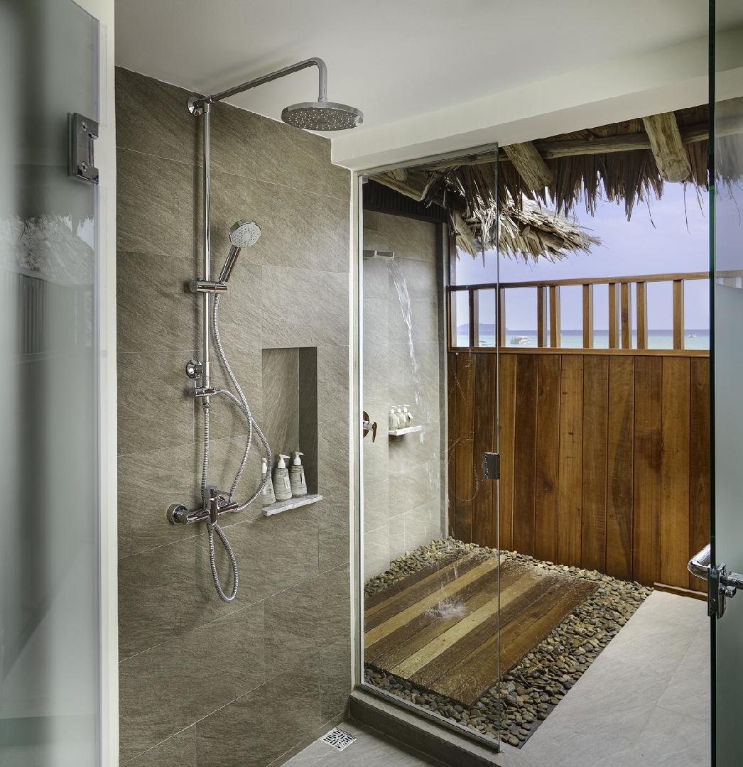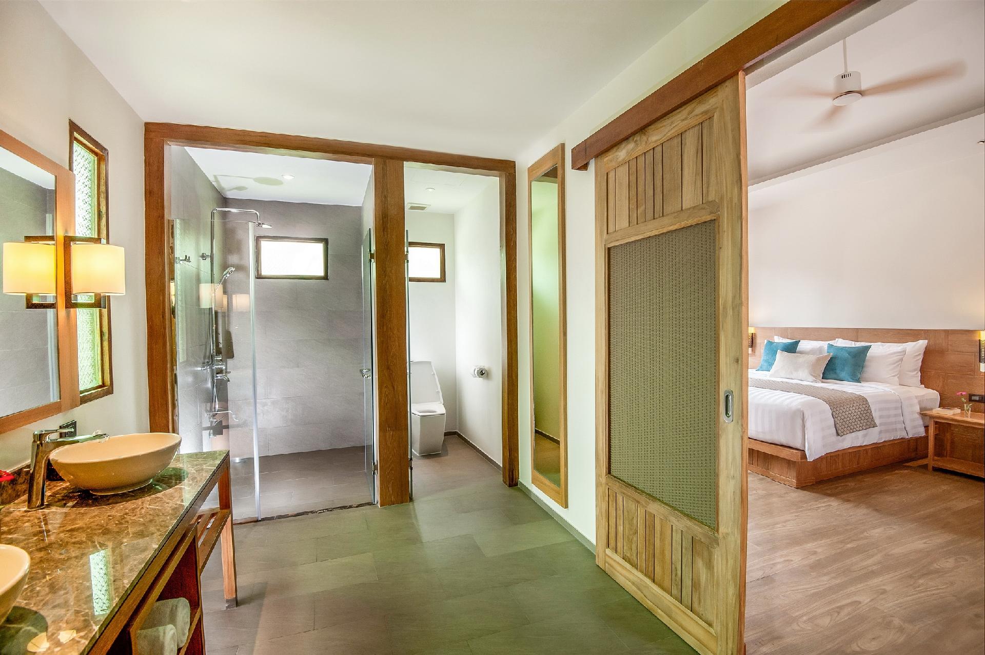Vybavenie izieb: klimatizácia, stropný ventilátor, kúpeľňa s WC a fénom, chladnička s minibarom, TV, rýchlovarná kanvica, telefón, terasa so slnečníkmi a ležadlami.