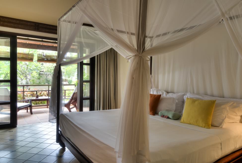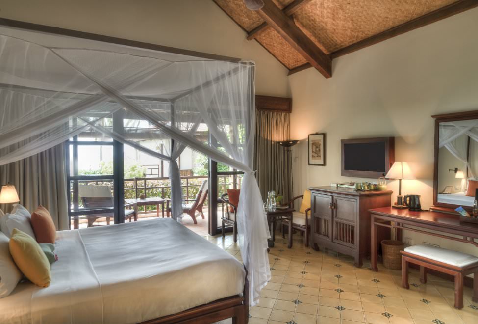 Vybavenie izieb: klimatizácia, stropný ventilátor, satelitný TV, kúpeľňa s WC, sušič vlasov, telefón, izbový trezor, varná kanvica, minibar, minichladnička. Každá izba má vlastnú terasu. Izby v základnej ponuke majú výhľad do záhrady.
