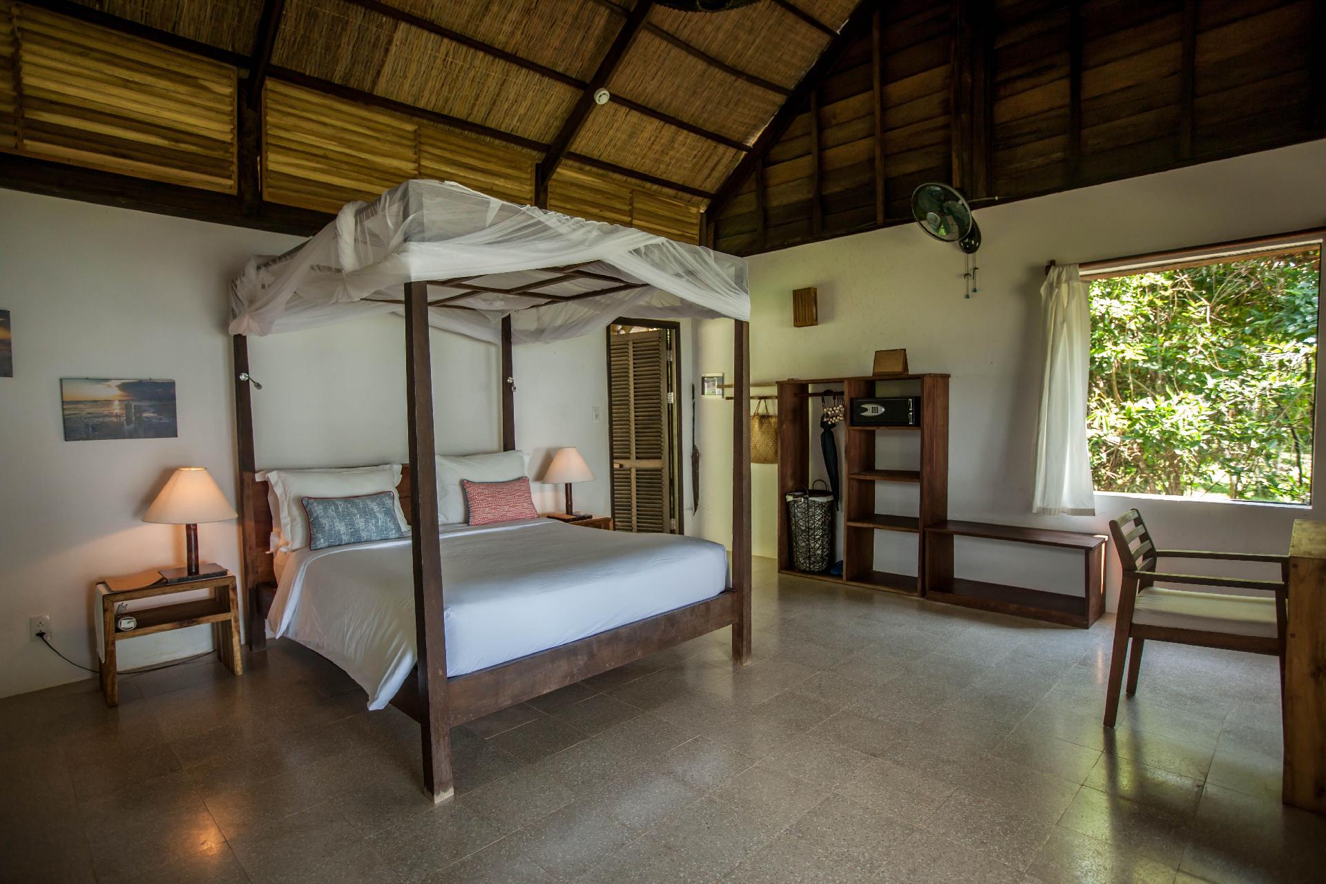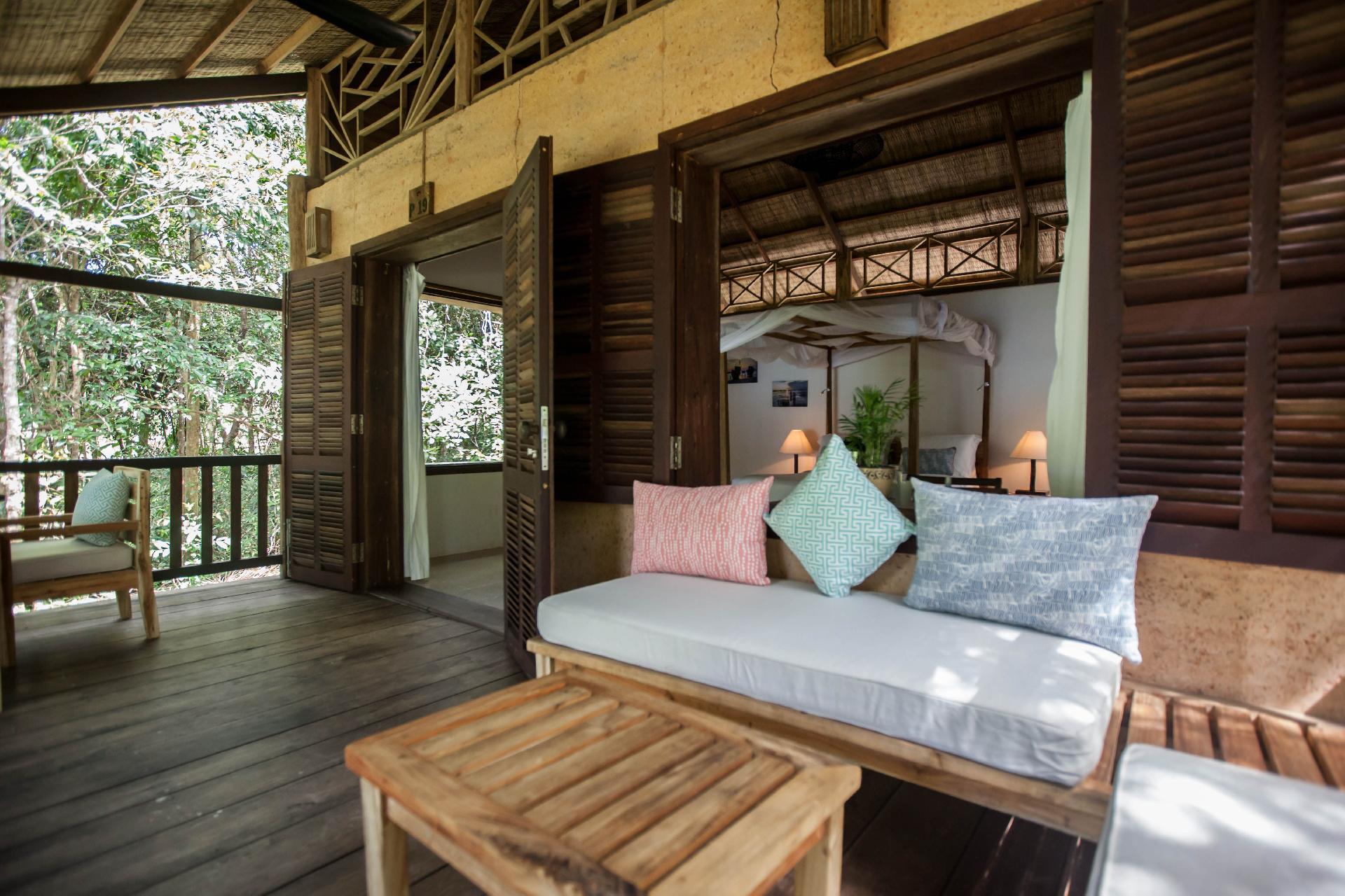 Vybavenie izieb: bungalovy postavené z prírodných materiálov so slamenou strechou. Verandah izby (30 m2) smerované k moru sú vybavené stropným ventilátorom, chladiacim boxom a terasou. K dispozícii ďalšie typy nadštandardných bungalovov, ktoré môžu mať vonkajšie kúpeľňu.
