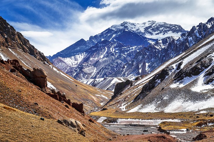 Raňajky. Celodenný výlet do Ánd, kde pôjdete v nadmorskej výške od 2.500 metrov do 3.500 metrov pozdĺž rieky Mendoza, okolo andských vrcholov. Najzaujímavejším momentom výletu pre Vás určite bude pohľad na majestátnu Aconcaguu (6.962 m n.m.), najvyššiu horu Južnej Ameriky. Okrem nej ešte uvidíte napríklad Tupungato (6.800 m n.m.) a mnoho ďalších veľhôr. Na spiatočnej ceste si pozriete preslávený most Inkov (Puente del Inca). Počas tohto dňa Vás čakajú nezabudnuteľné zážitky, budete úplne unesení prírodnými scenériami. Návrat do Mendoza. Vyskúšajte miestne bifteky, najchutnejšie mäso na svete majú skutočne v Argentíne. Nocľah v Mendoza.
