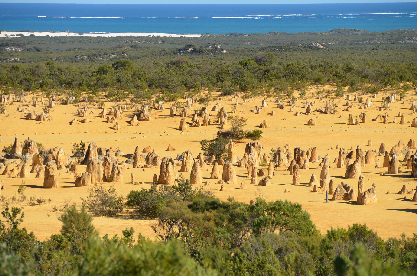 Po návšteve historickej dedinky Greenough nás pohltí NP Nambung s ohromujúcim pohľadom na púšť, z ktorej vystupujú tisíce pieskovcových pilierov (Pinnacles).