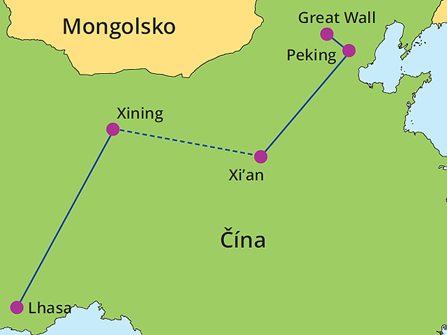 leteckú dopravu Praha – Peking, Xi´an - Xining a Lhasa - Peking – Praha s prestupom (možnosť odletu z Viedne na vyžiadanie, možný príplatok)