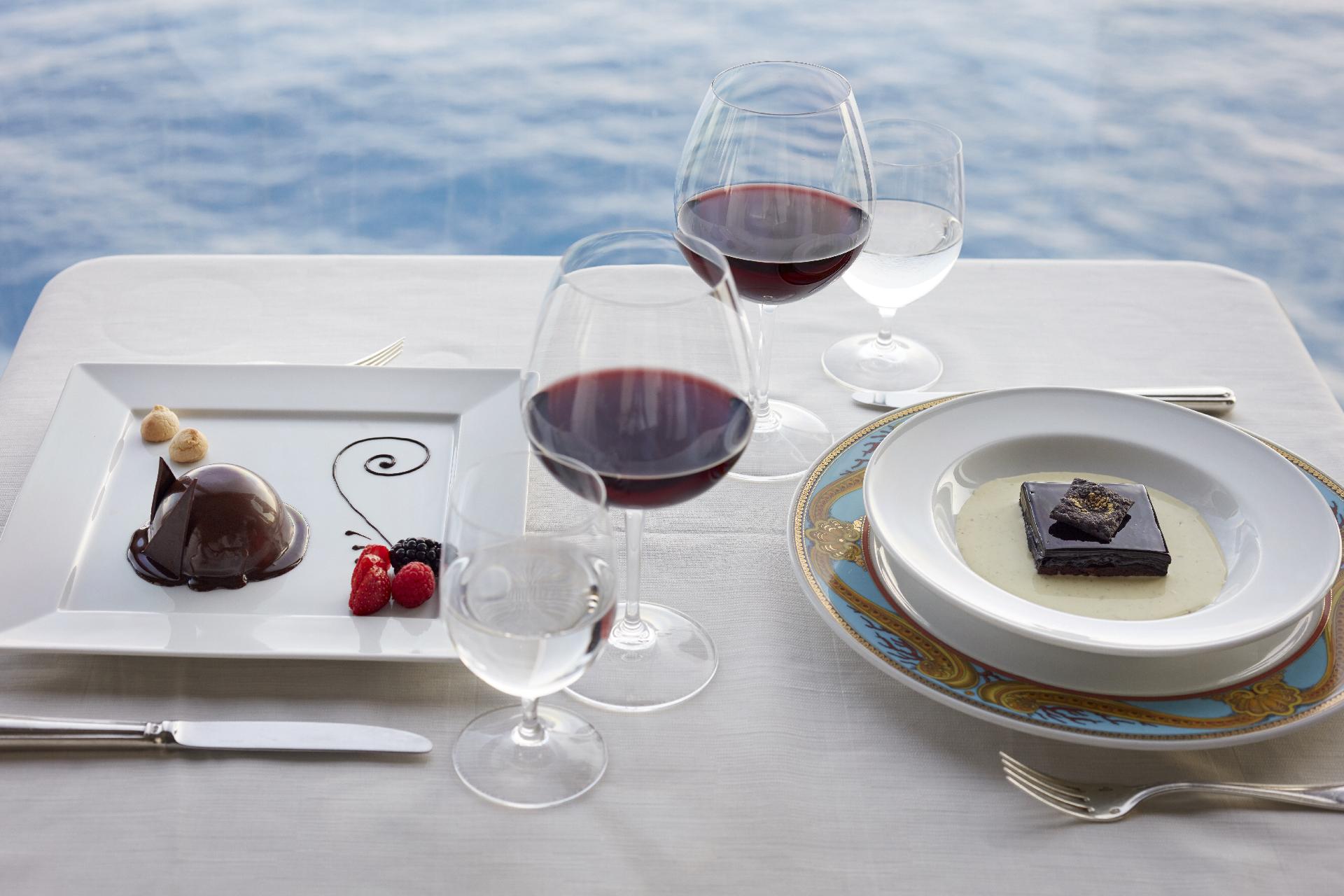 Terrace Café: reštaurácia s presklenou stenou a vonkajšou terasou pre raňajky, obedy a večere s medzinárodnou kuchyňou a večerami so sofistikovaným menu vrátane homára, kotliet a pokrmov z rýb,čerstvým sushi a vegetariánskou kuchyňou