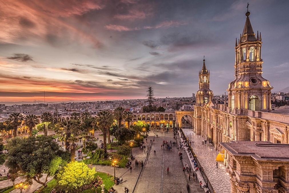 Prejazd cez Altiplano do "bieleho mesta" Arequipa položeného pod 5.821 metrov vysokou spiacou sopkou El Misti. Altiplano je náhorná plošina, ktorá oddeľuje východné a západné Andy. Po Tibetskej plošine je táto druhou najrozsiahlejšou plošinou na svete. S veľkou pravdepodobnosťou cestou stretnete stáda lám, alpák a vikúň. Ubytovanie a prechádzka nočným mestom s krásne osvetlenou katedrálou. Nocľah v Arequipa.