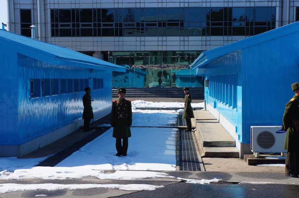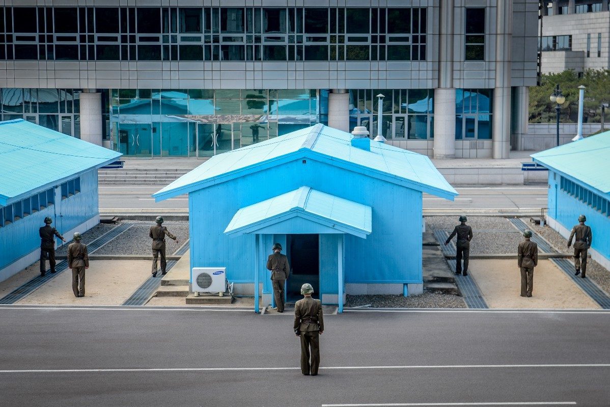 Prehliadka demilitarizovanej zóny v Pchanmundžom. Tu bolo v roku 1953 podpísané prímerie, ktoré ukončilo