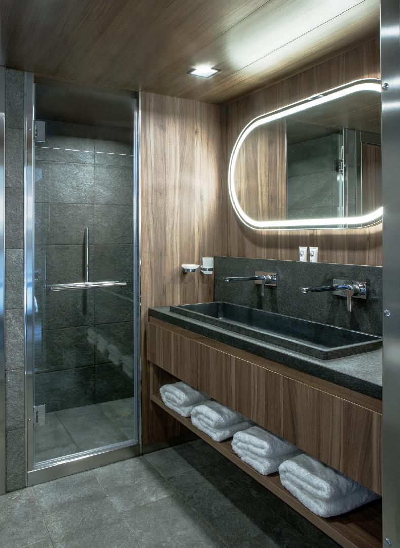 Kajuty: vlastné sociálne zariadenie, posteľ, stôl, TV, sušič vlasov. Všetky kajuty majú okná.