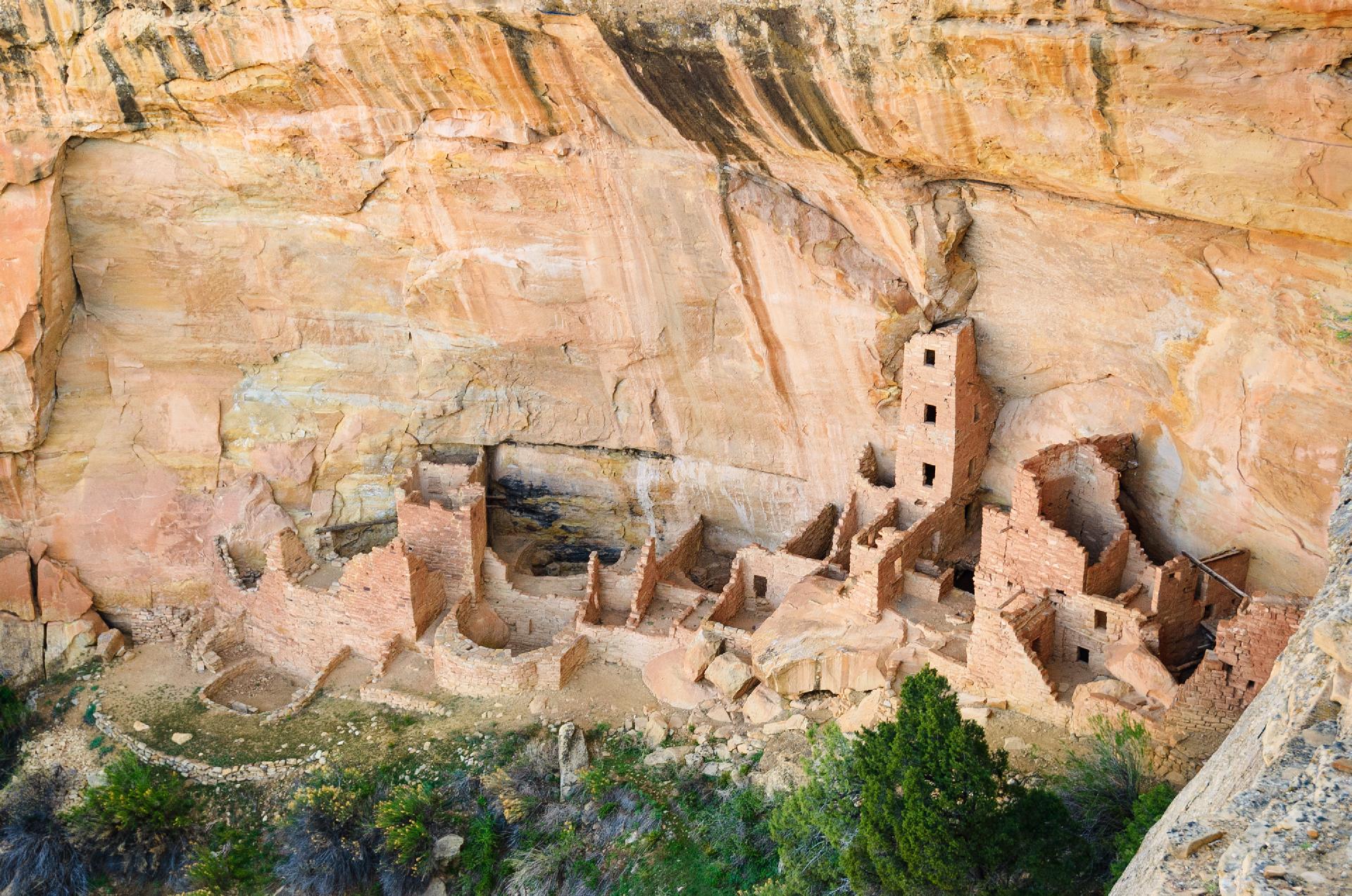 Najväčší z pieskovcových palácov tajomných staviteľov Anasazi sa nachádza pod previsom strmého kaňonu NP Mesa Verde. Okolo roku 1000 obývalo jho 218 miestností cez 200 ľudí. Sídlisko ponúkalo bezpečie, cesta k nemu viedla len zdola po rebríkoch. V jazyku Navahov znamená Anasazi „dávny nepriateľ“. Dnes ho veda označuje za predchodcov pueblových indiánov. Pôvodne žili na vrchole plošín v primitívnych domoch z dreva a hliny napol zakopaných v zemi. Po niekoľkých storočiach sa náhle stiahli pod ochranu skalných ríms do dômyselných kamenných stavieb. S pestovaním kukurice pokračovali na dnách kaňonov, odkiaľ čerpali vodu. Okrem schopných poľnohospodárov boli i šikovnými remeselníkmi. Navzdory izolácii čulo obchodovali s vonkajším svetom. Archeológovia objavili v príbytkoch lastúry z tichomorského pobrežia. Okolo roku 1300 opustili záhradne svoje mestá. Či len kvôli 20 rokov trvajúcemu suchu, nie je jasné. Usadili sa na severozápade Nového Mexika a splynuli s inými indiánskymi kmeňmi.